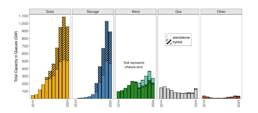 1. Transmission Bottleneck: The U.S. Department of Energy reports 11,600 green energy projects are delayed due to grid interconnection queues. The White House says U.S. transmission capacity must more than double by 2035 to meet decarbonization goals.