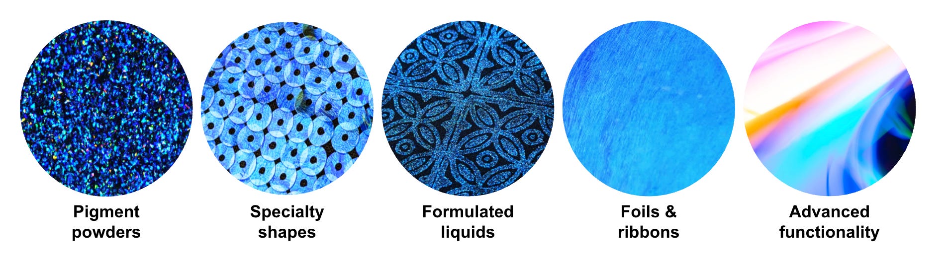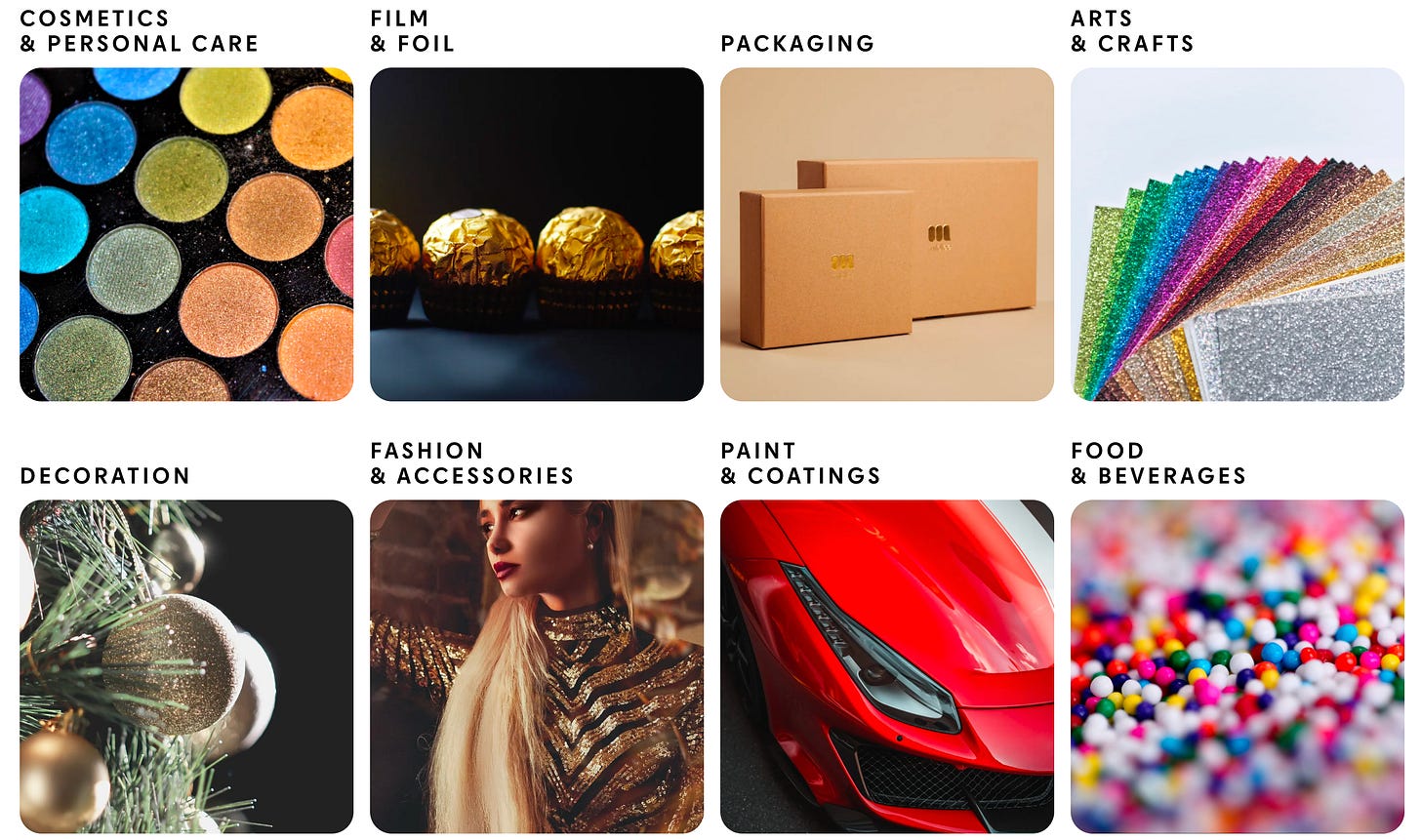 Versatility: They offer top quality pigments, pearls, glitters, sequins, inks, films, and foils. All from the same concept. It works for existing supply chains in food, fashion, cosmetics, packaging, you name it! Extremely customizable to client specifications.