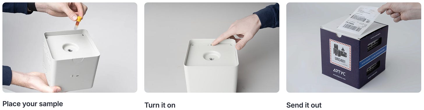 Real-Time Monitoring: Onboard sensors track GPS, temperature, battery, lid openings, and shock events. Artyc's portal provides complete info showing where samples are, how cold they are, and who accessed them without opening the lid.