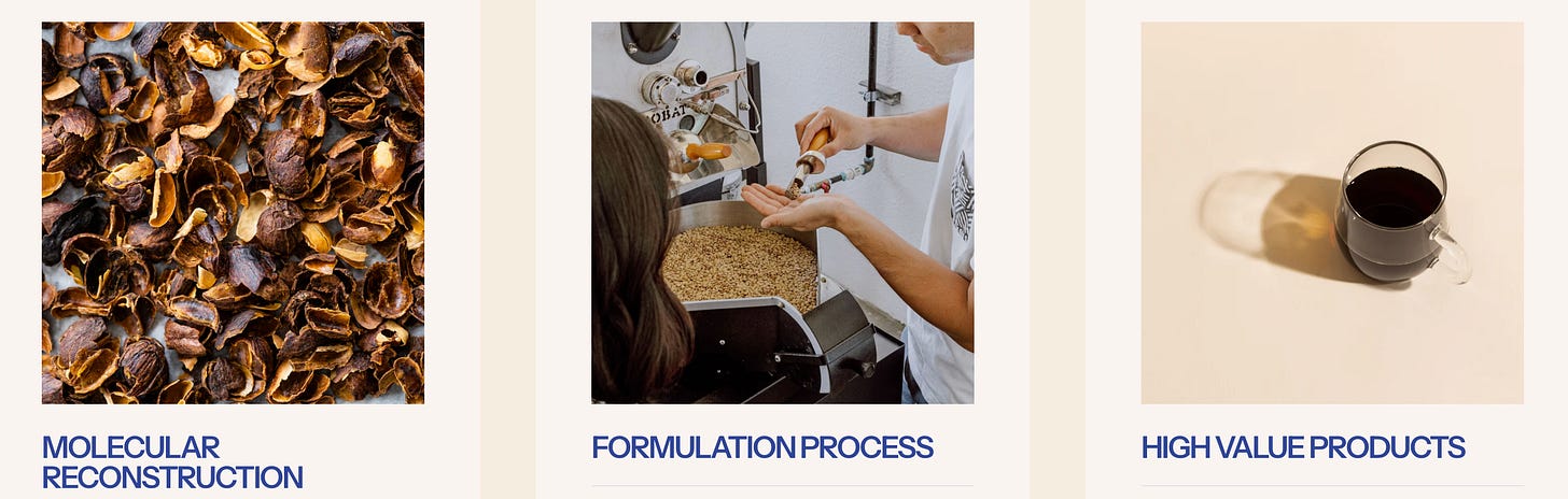 They've since raised over $10 million and pivoted from D2C to B2B, offering ingredient platforms to food manufacturers and are in discussions with partners to scale production to hundreds of metric tons for both coffee and cocoa applications.