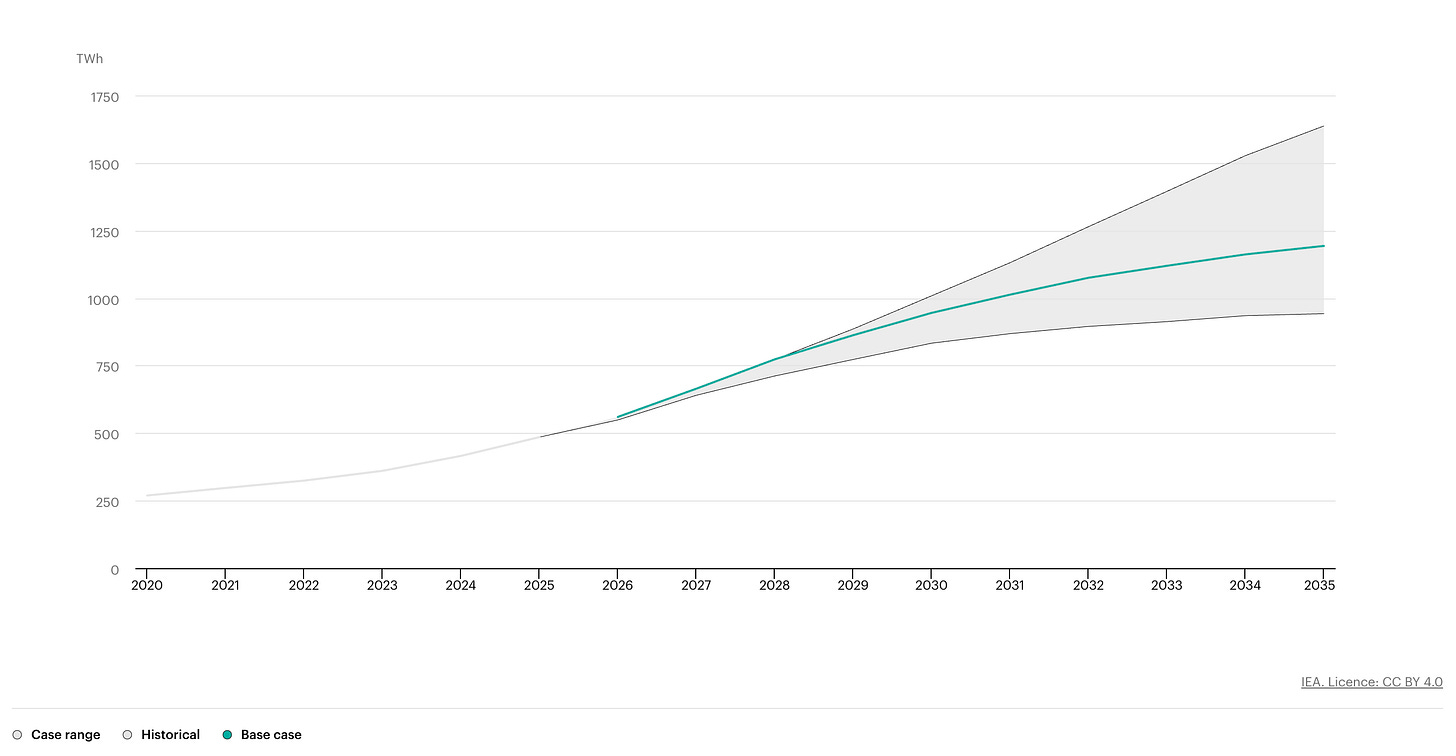 1. Data Center Demand: Global data center electricity consumption hit 415 TWh in 2024, about 1.5% of all electricity on Earth. The IEA projects it will double to ~945 TWh by 2030. AI is the main driver: AI-optimized servers consume up to 6x more power per rack than conventional ones.